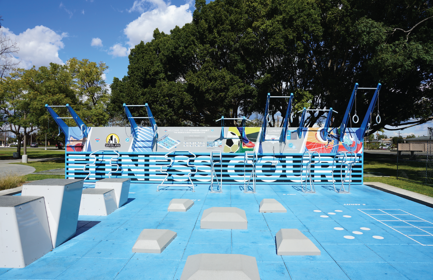 Santa Ana worked with 8 talented local artists, creating an amazing gallery of public art throughout their park system. They also are the home of the pilot site for the Fitness Court® Studio.