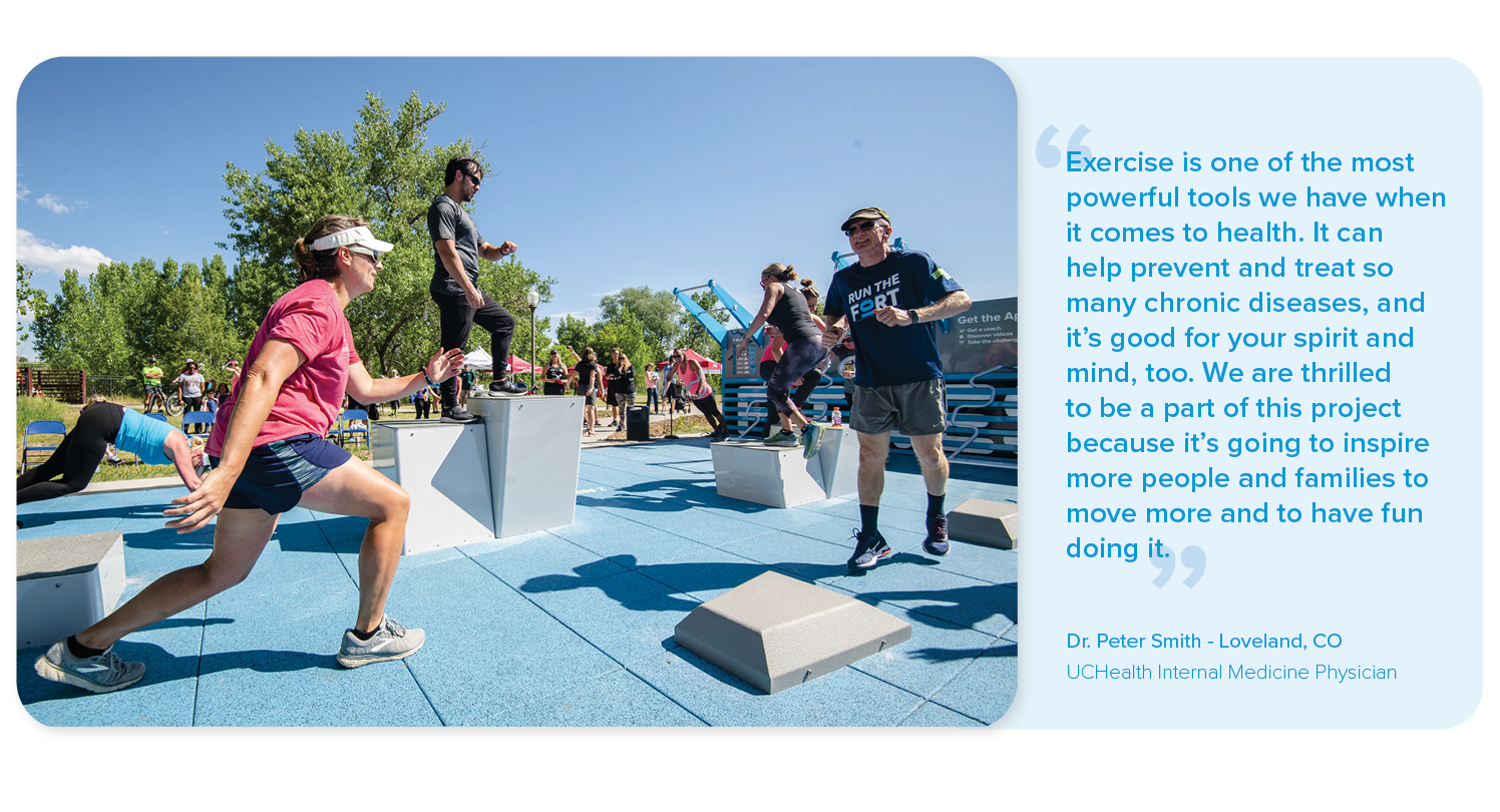 “Living an active lifestyle is so important for everyone’s health and well-being. It is well documented that regular exercise can help ward off illness, manage chronic health conditions and improve mental health. As a health care provider, UCHealth is committed to helping our patients live extraordinary lives and we are excited to partner with National Fitness Campaign to bring fun, free and easy to access fitness options to the people across the state of Colorado.”