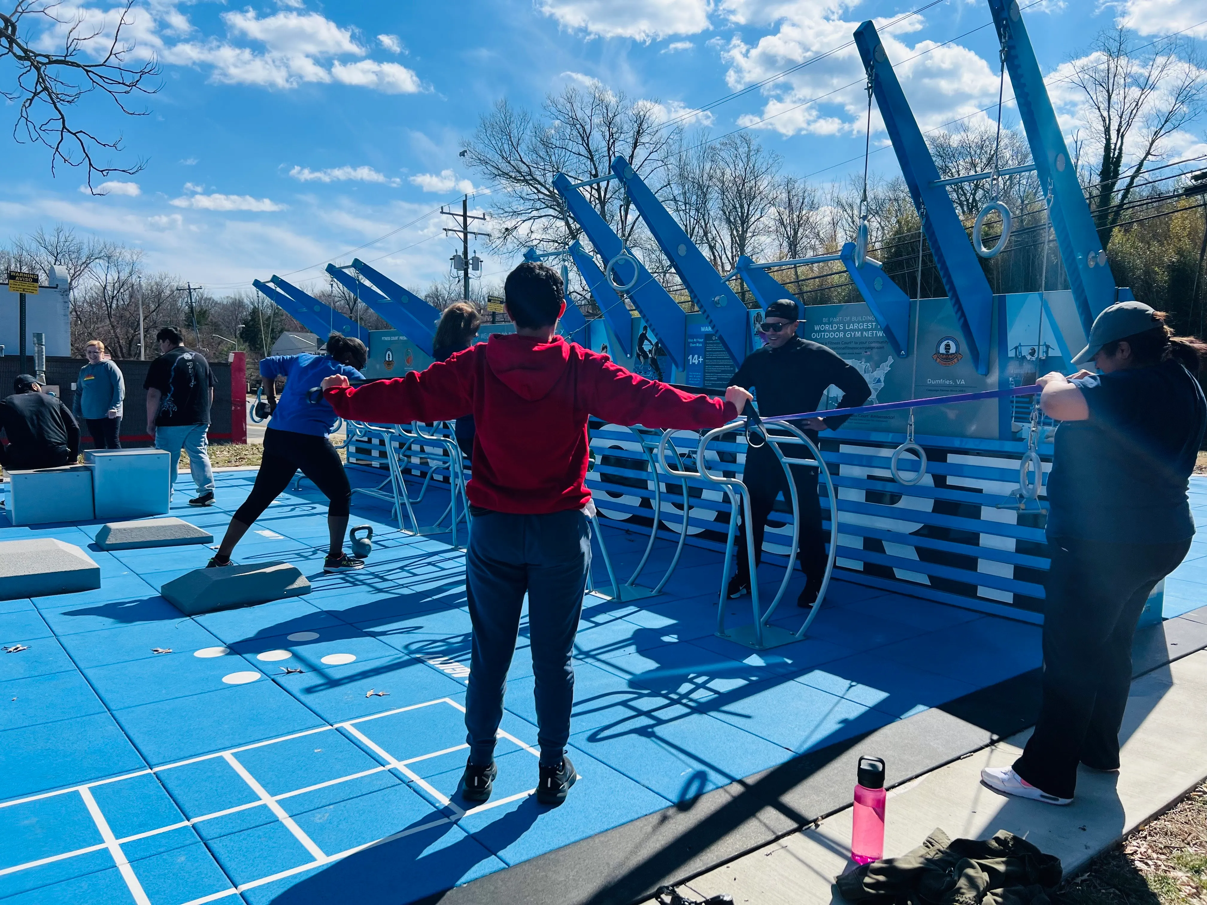 The idea for these classes began with a conversation between Freddy and Dumfries Mayor Derrick Wood, a longtime friend and fellow wellness advocate. The two reconnected at the opening of a local gym—Freddy catering the event, and the Mayor showing his support for health and wellness in the community. Inspired by their shared goals, Freddy and Mayor Wood had the idea for community workouts at the Fitness Court—and Mayor Wood even joined one of the first sessions himself.