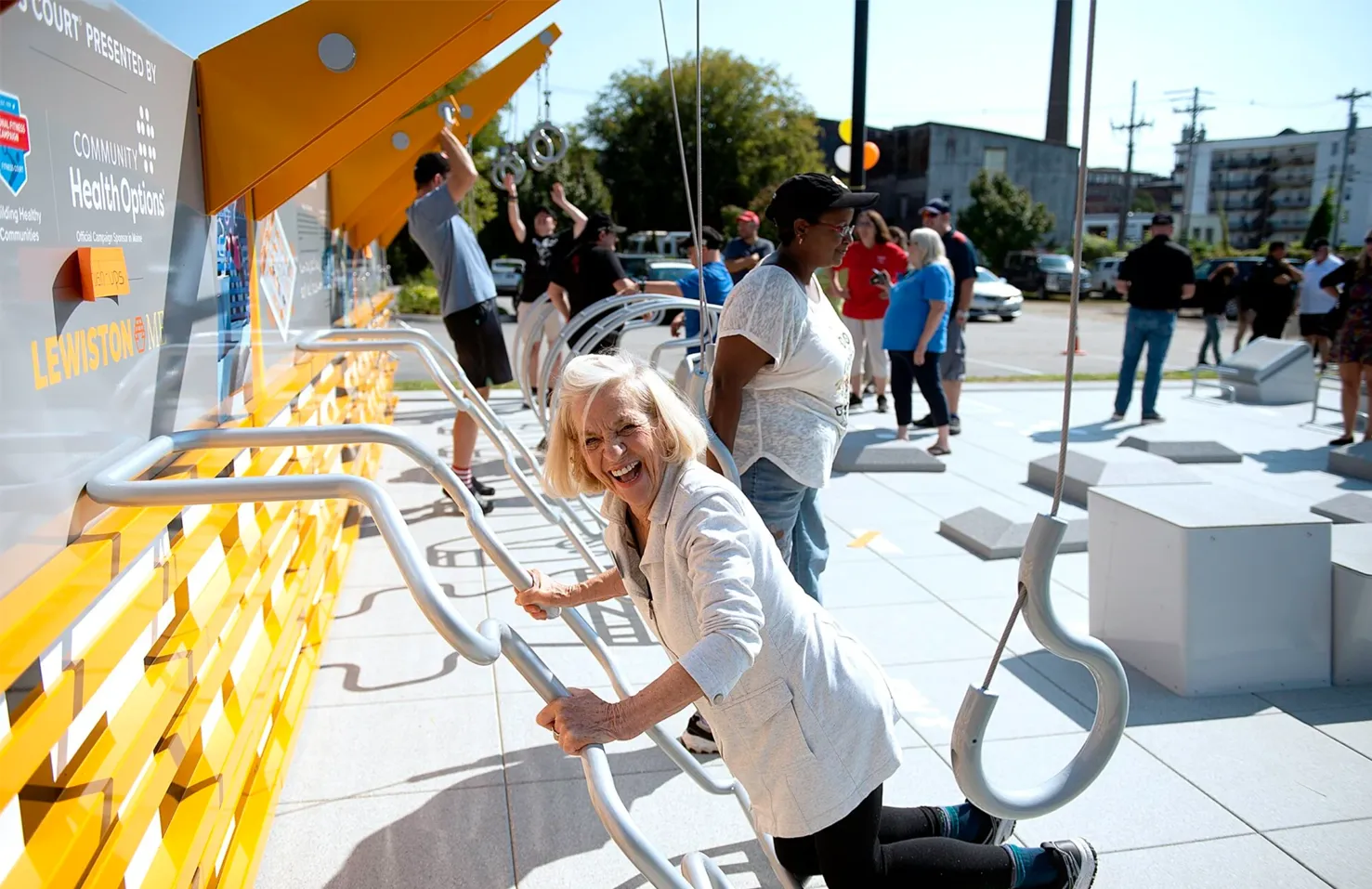 The city of Lewiston became the first city in Maine to welcome a Health Options Fitness Court® in September 2022 at Simard-Payne Memorial Park. This location was selected as a focal point to promote social interaction, pedestrian movement and healthy living. Situated near the riverwalk, and connected by pedestrian trails, the Fitness Court® enhances the healthy infrastructure in Lewiston, bringing people outdoors and away from sedentary habits.