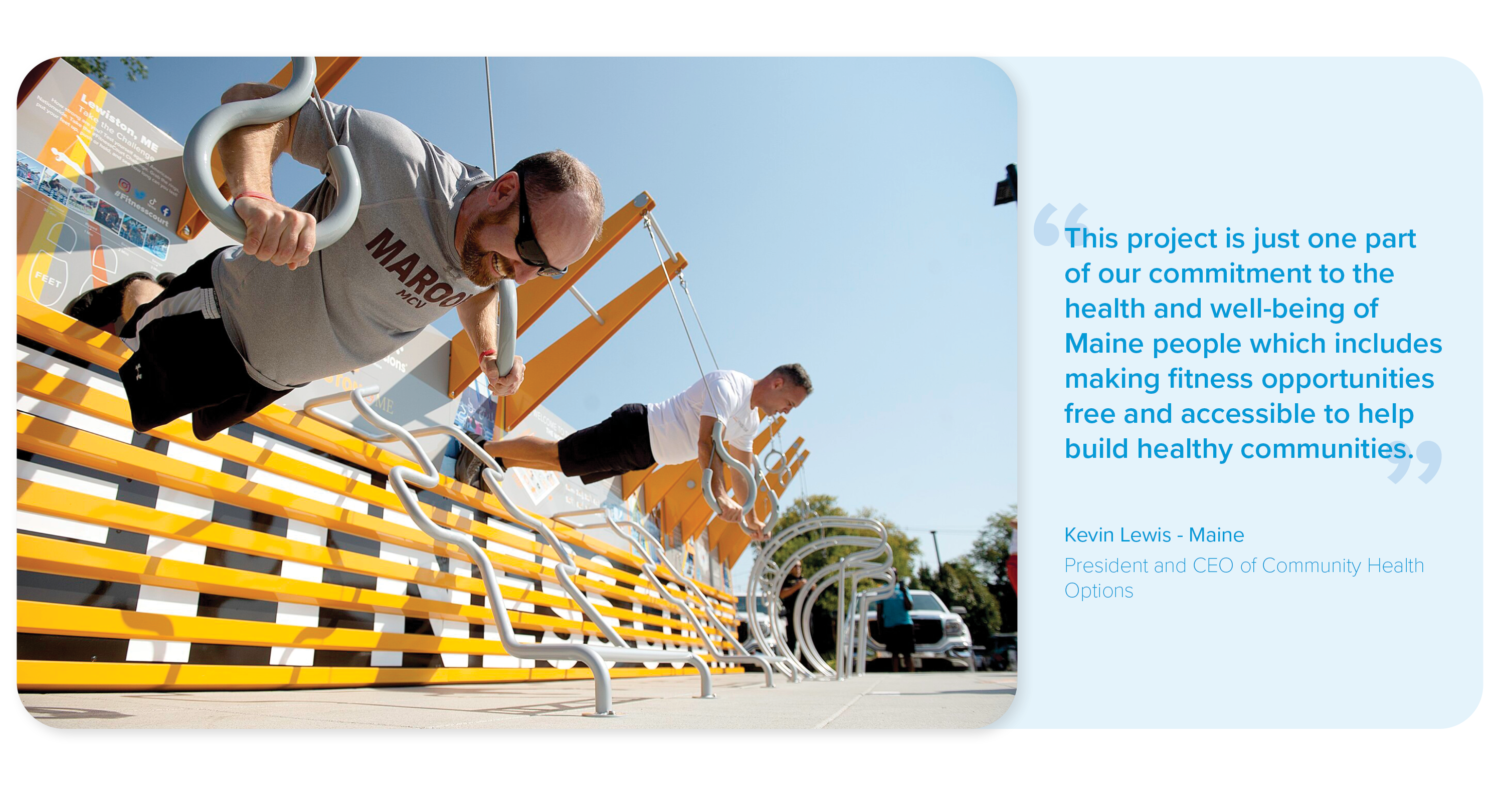 “National Fitness Campaign is proud to announce the extension of our partnership with Community Health Options to continue our journey to improve the quality of life across the state of Maine. NFC continues to embrace our mission of getting people moving outdoors by helping communities combat the fiscal and humanitarian costs of inactivity.”