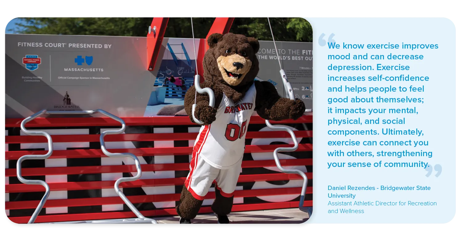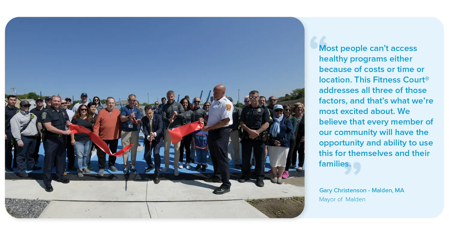 “As we continue our mission of building a Fitness Court within a 10-minute bike ride of every American, the National Fitness Campaign is proud to extend our sponsorship with Blue Cross Blue Shield of Massachusetts. Together, we're building a wellness culture focused on health equity to combat the rising costs of sedentary lifestyles.”