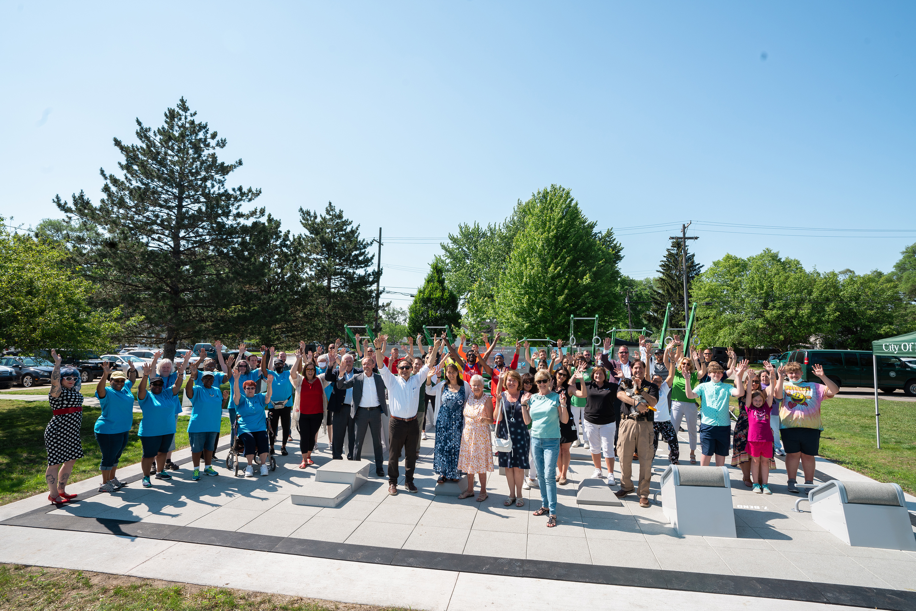 Priority Health for Good on the Road ribbon cutting highlight in Highland Park, featuring local ambassadors, the Parks and Recreation Director, and local Priority Health Representatives.