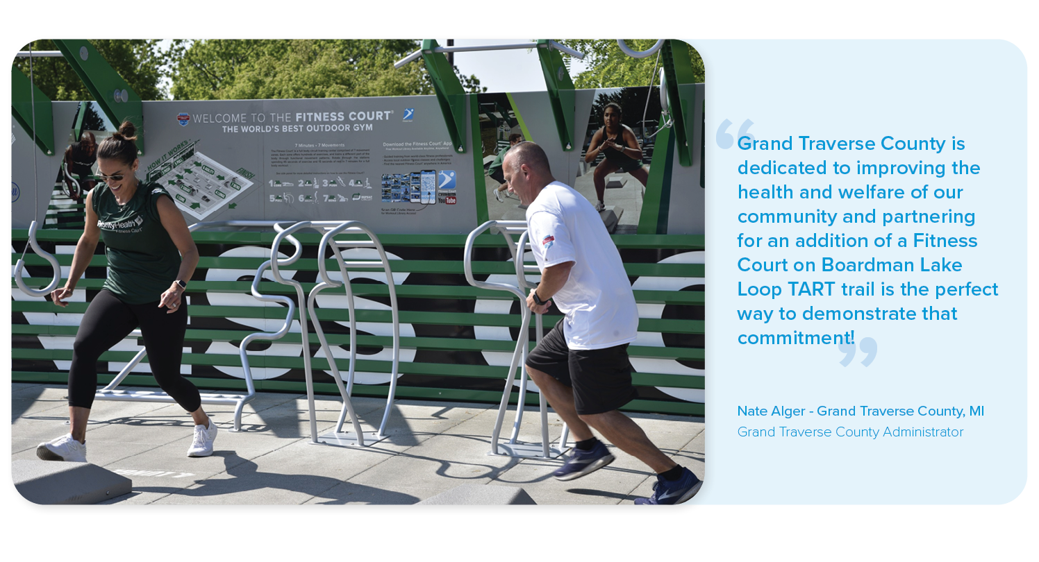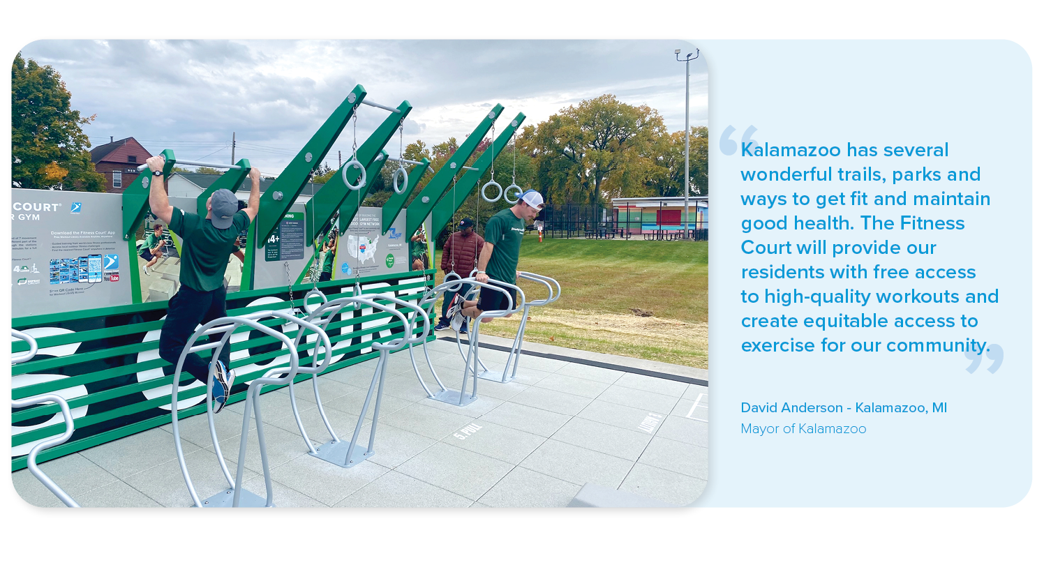 NFC is calling on Mayors, Civic and Education leaders, and Community Champions to join the urgent fight against sedentary lifestyles and preventable diseases. We can make a difference if we work together to increase outdoor movement and provide wellness activities that are equitable, accessible and free! Let’s build a free outdoor Fitness Court® within a 10-minute bike ride of every Michigander, together.