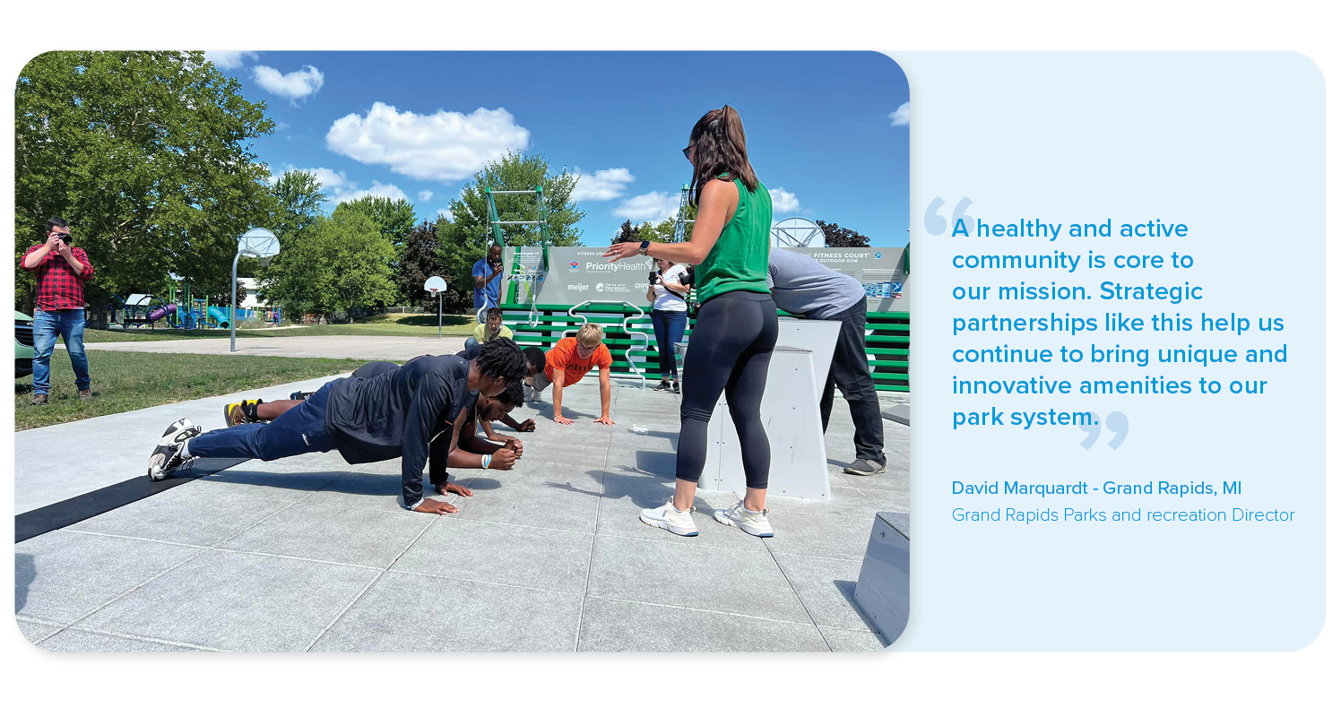 The Priority Health and NFC Campaign in Michigan is delivering outdoor wellness infrastructure to help communities stay active across the state, in an effort to change health outcomes. Out of Michigan's 83 counties, there are open Fitness Courts® across 17.