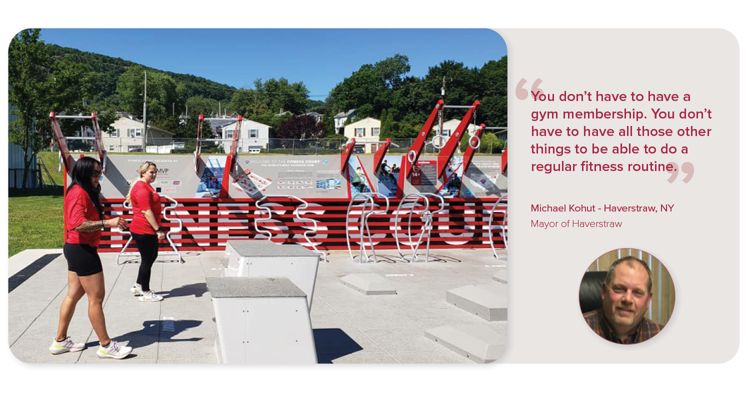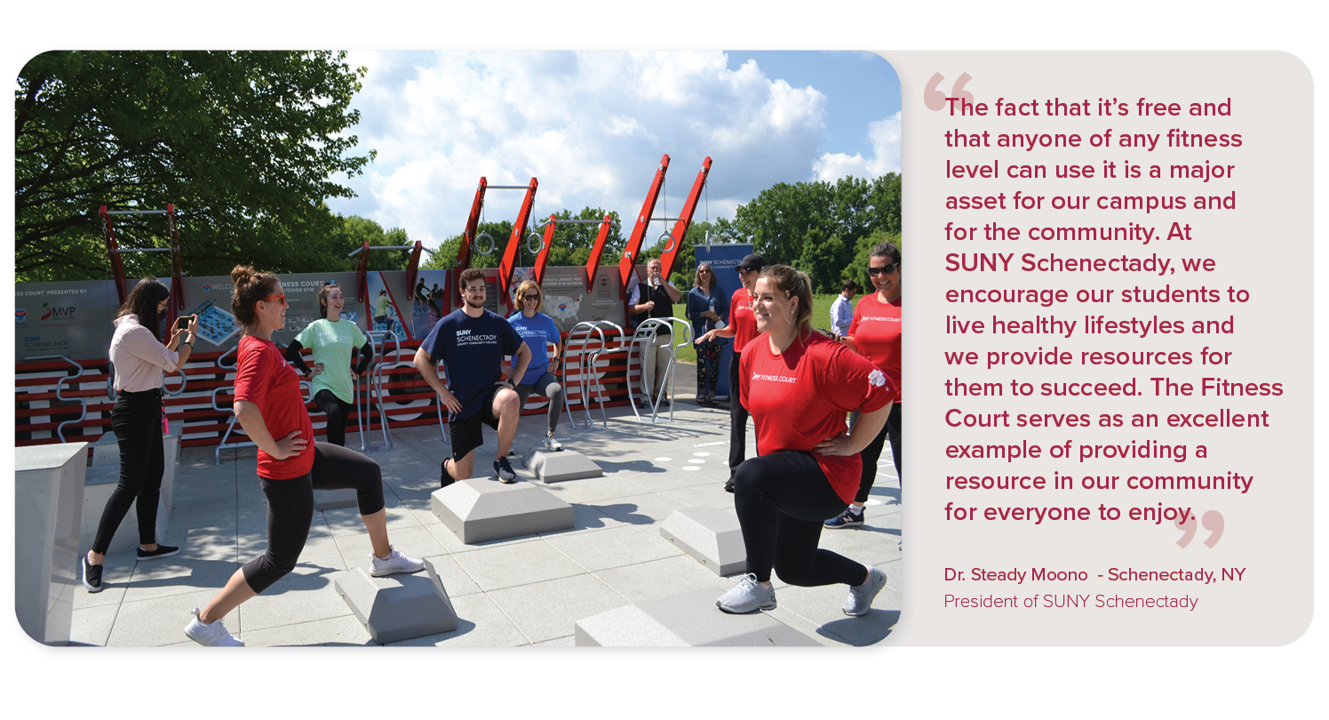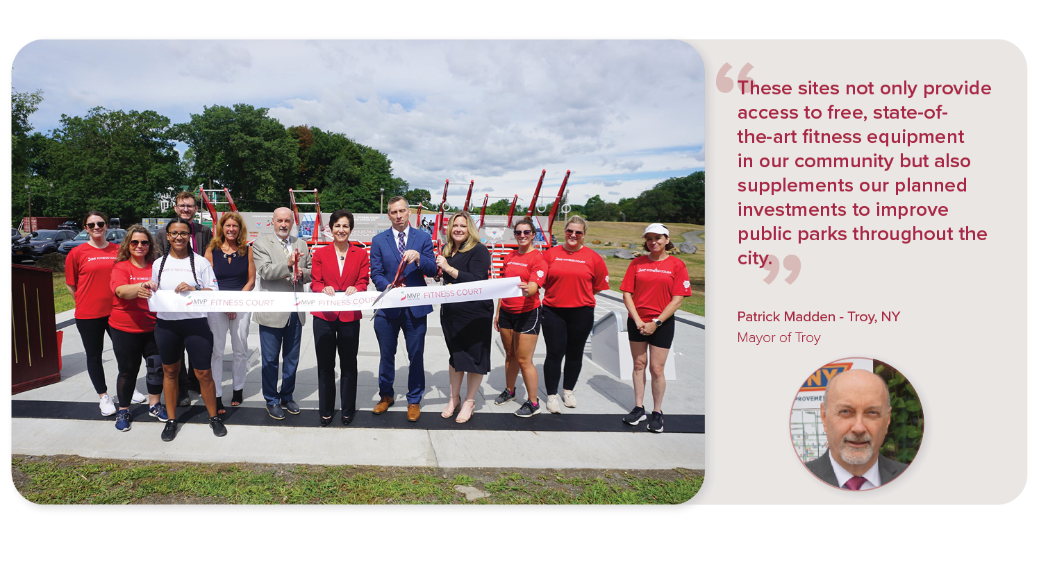 The MVP Health Care and NFC Campaign in New York and Vermont are delivering outdoor wellness infrastructure to help communities stay active across the state, in an effort to change health outcomes. Out of New York's 62 counties, there are open Fitness Courts® across 18.