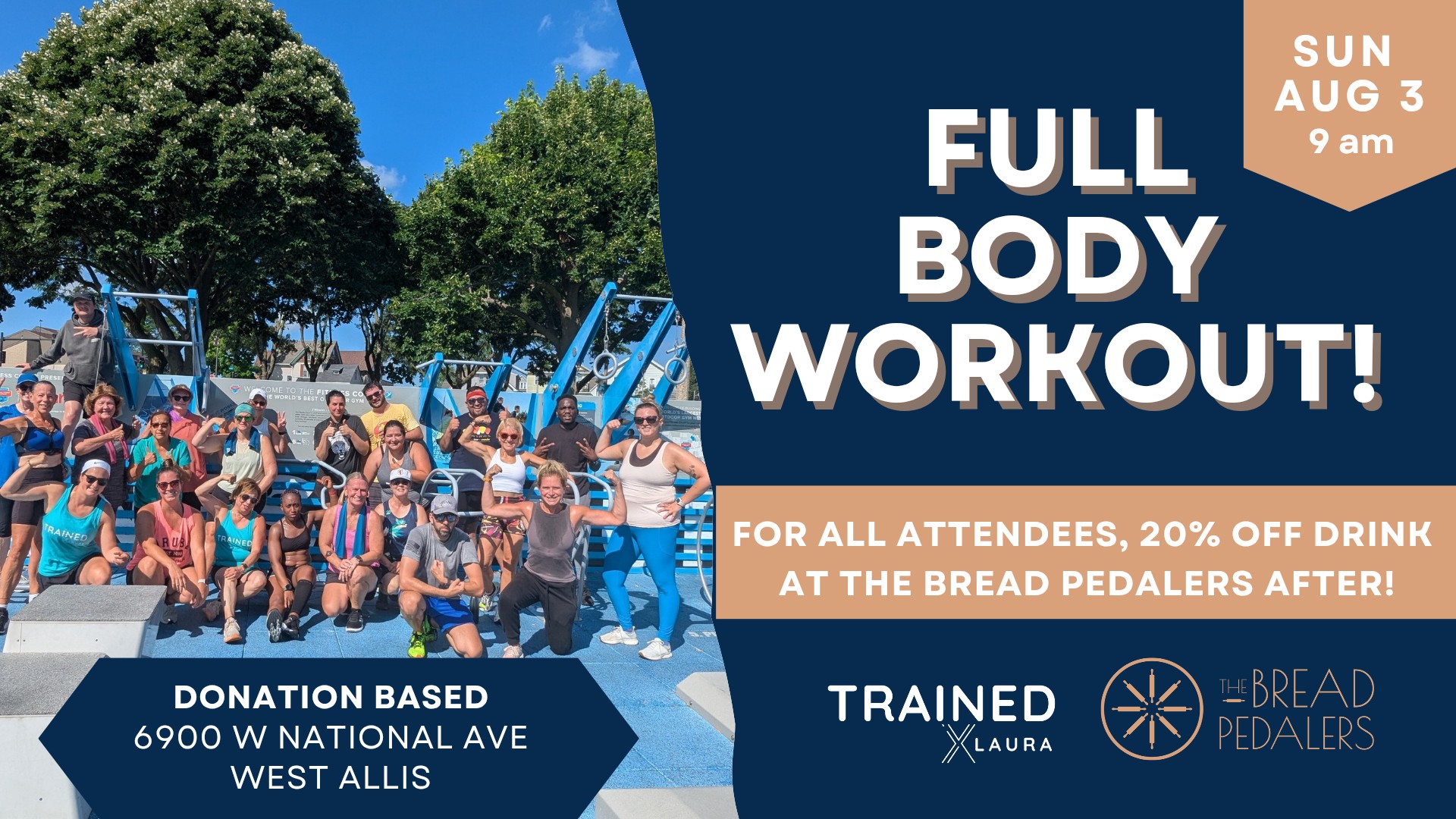 When the West Allis Fitness Court® launched at Veterans Memorial Park in 2021, Laura immediately saw its potential to extend her mission. Having already experimented with outdoor community workouts in local parks and along the lakefront, she knew this new space could become a hub for connection, wellness, and fun.