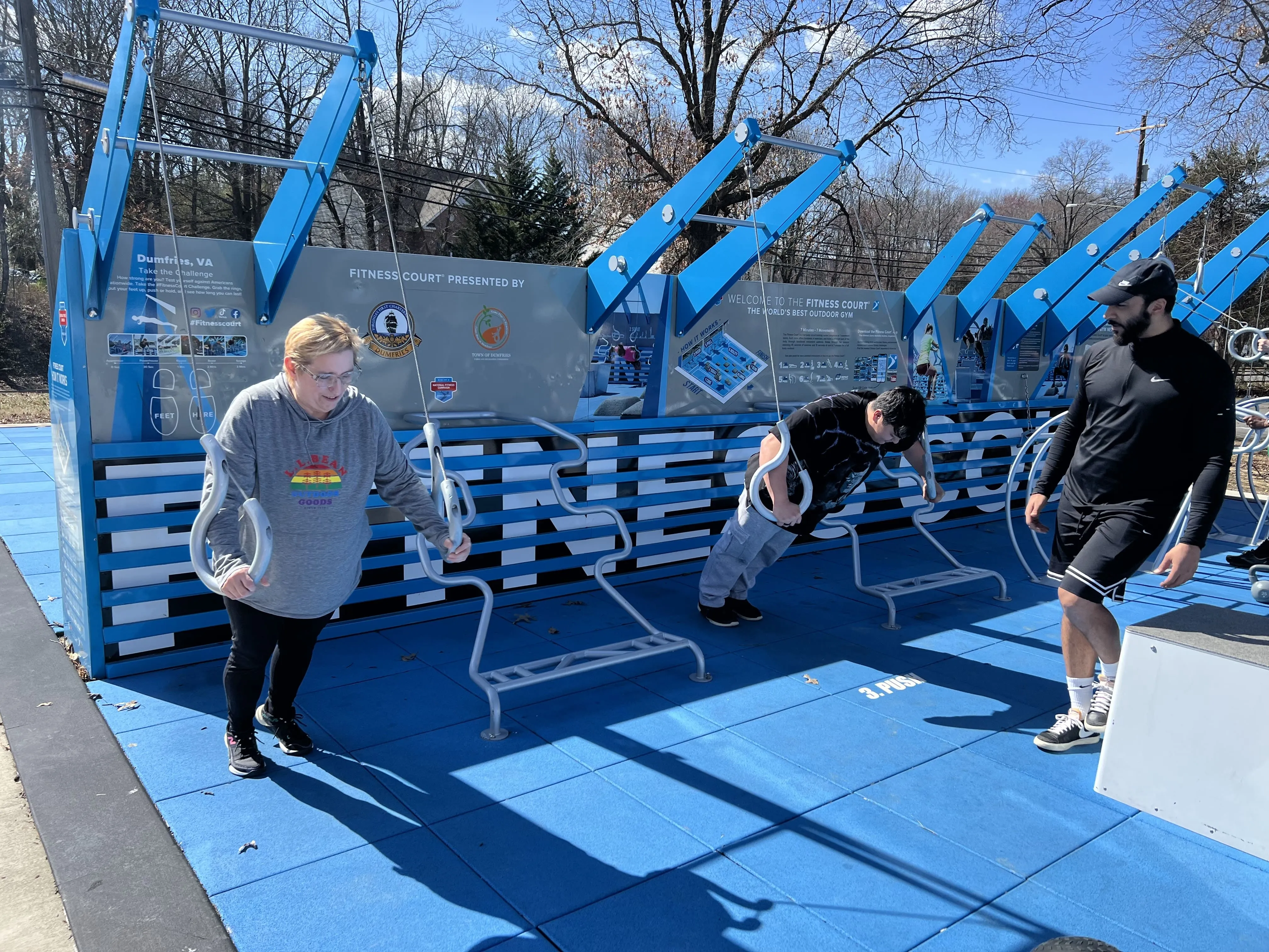 The idea for these classes began with a conversation between Freddy and Dumfries Mayor Derrick Wood, a longtime friend and fellow wellness advocate. The two reconnected at the opening of a local gym—Freddy catering the event, and the Mayor showing his support for health and wellness in the community. Inspired by their shared goals, Freddy and Mayor Wood had the idea for community workouts at the Fitness Court—and Mayor Wood even joined one of the first sessions himself.