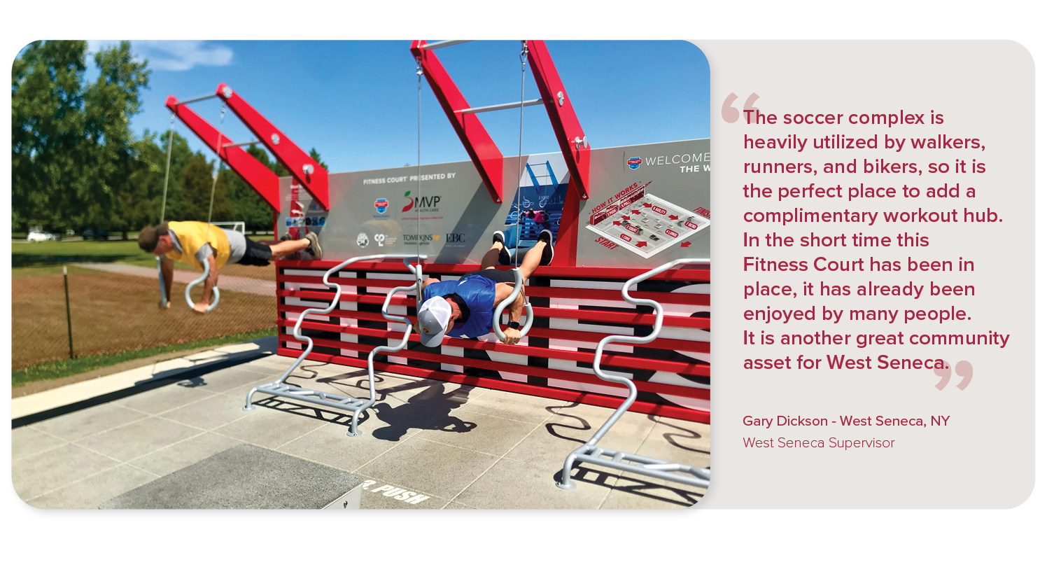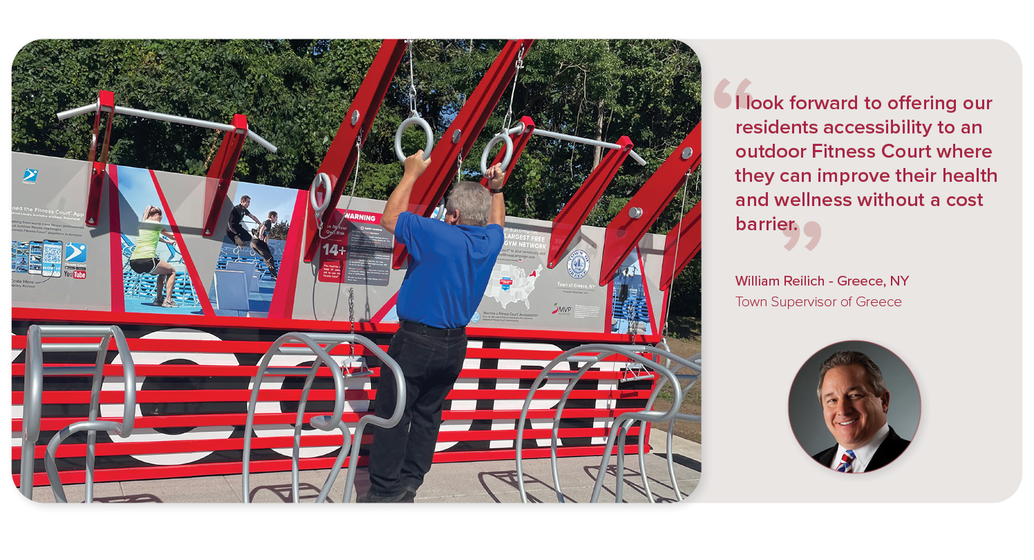 The MVP Health Care and NFC Campaign in New York and Vermont are delivering outdoor wellness infrastructure to help communities stay active across the state, in an effort to change health outcomes. Out of New York's 62 counties, there are open Fitness Courts® across 18.