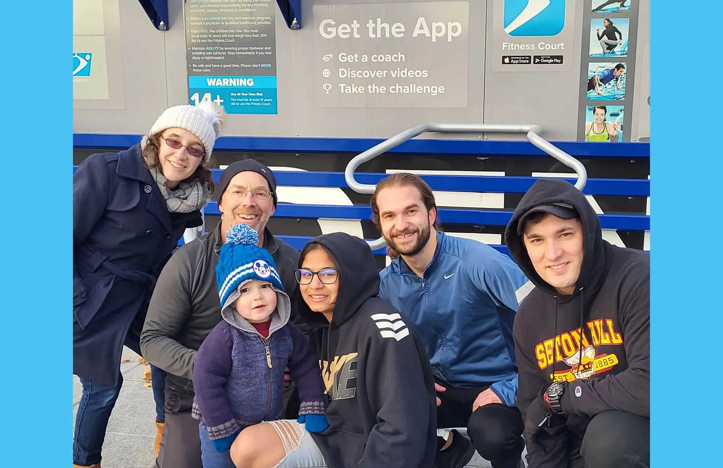 A: I saw the Fitness Court® in Hampden for the first time when I went to play tennis at a nearby court. At that time, one of my boys and my wife were doing CrossFit and my other boy was into gym climbing and Spartan competitions. He taught me the five basic exercise movements - bend, pull, push, squat, carry. While I find both CrossFit and Spartan competitions to be a bit much, the layout of the Fitness Court® intrigued me. When I saw the workouts, it seemed to be very smart, taking those 5 basic exercise movements and incorporating cardio and agility components. That it's outdoors, free, fun, and smart makes it great. It just so happens that I have family in Lewiston, ME, Newton, MA, and Clarion, PA – all of which have Fitness Courts® for me to use.